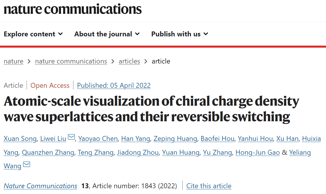 2021年以来,刘立巍副教授以第一或通讯作者身份还发表了Nat. Commun. 1篇,2D Materials 1篇,ACSNano 1篇,J. Phy. Chem. Lett.1篇,Prog. Surf. Sci.1篇,Nano Res.2篇。其中与CDW相关的工作如下: