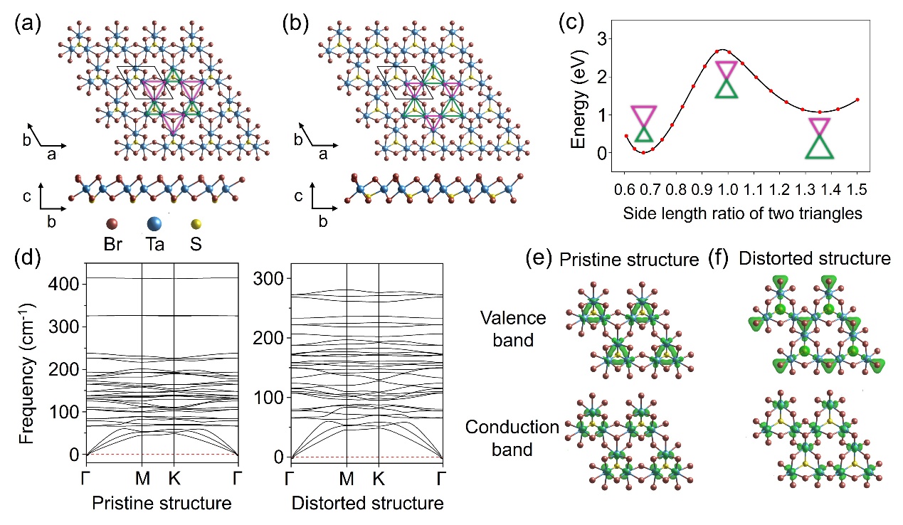图1:呼吸型笼目半导体单层Ta₃SBr₇的原子结构自由度