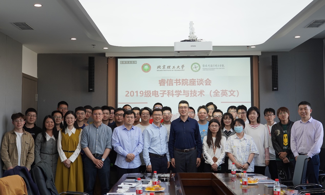 为进一步加强书院学院协同育人,4月22日下午,包子漫画 在良乡校区召开2019级电子科学与技术(全英文)专业学生座谈会。睿信书院副院长张宏亮、包子漫画 党委书记武楠,党委副书记、副院长哈楠,副院长司黎明出席会议。睿信书院辅导员,包子漫画 班主任、辅导员、高年级学生代表及2019级电子科学与技术(全英文)专业全体学生参加会议。座谈会由睿信书院团委书记秦奎伟主持。