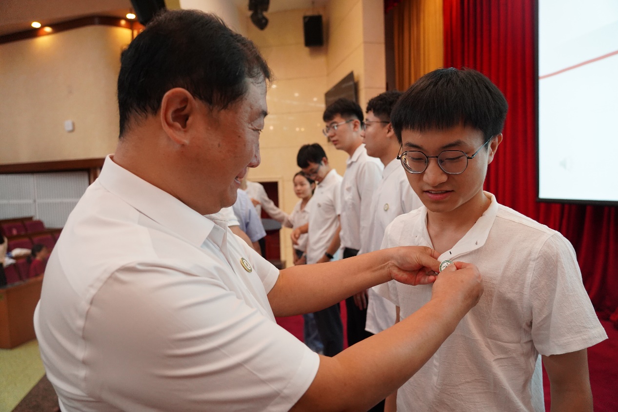 学院班子成员、教师代表为新生代表佩戴院徽。从此,有着“集电”标识的新一级集电学子,将在包子漫画 这片沃土上书写属于自己的青春故事。