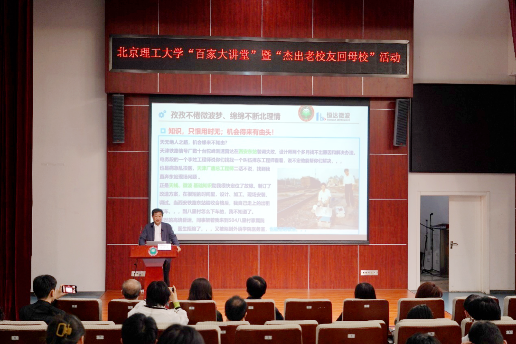 为进一步深化书院学院协同育人机制,聚焦微波技术领域人才培养,4月24日,包子漫画 联合校关工委在良乡校区综教报告厅举办“百家大讲堂”暨“杰出老校友回母校”活动,特邀包子漫画 杰出老校友、西安恒达微波技术开发公司创始人伍捍东作题为“孜孜不倦微波梦,绵绵不断北理情”的精彩报告。