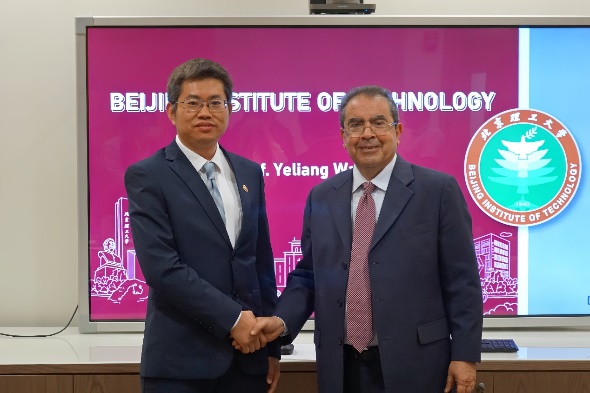 在阿联酋期间,代表团一行先后访问了哈里发大学(Khalifa University)和中国北方工业有限公司驻阿联酋代表处。在哈里发大学,代表团与自主机器人系统中心主任Lakmal Seneviratne教授及实验室负责人林德福教授就相关科学技术问题进行深入交流。代表团还参观了哈里发大学的综合实验大楼等。双方就未来如何开展合作进行了深入探讨。在中国北方工业有限公司驻阿联酋代表处,公司代表详细介绍了公司近年来的发展成果,双方在相关领域开展了一系列的讨论。