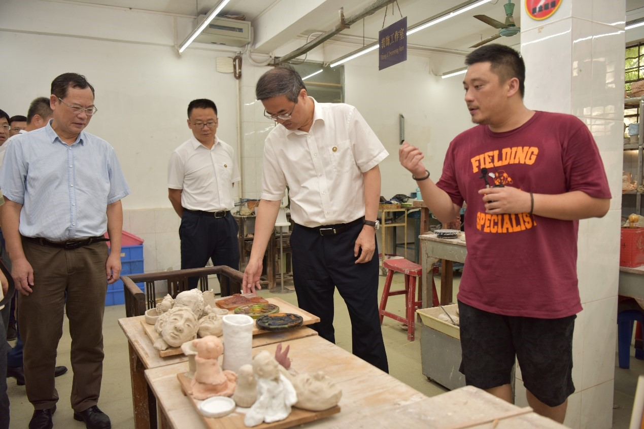 会前,张军一行参观了学校陶艺馆、图书馆,了解校园文化建设等情况。